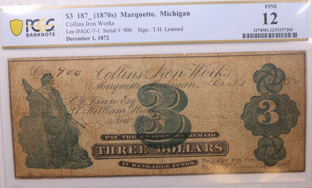 187_ $1 Marquette, MI., Obsolete Currency., PCGS Fine-12., Store #GMI076.