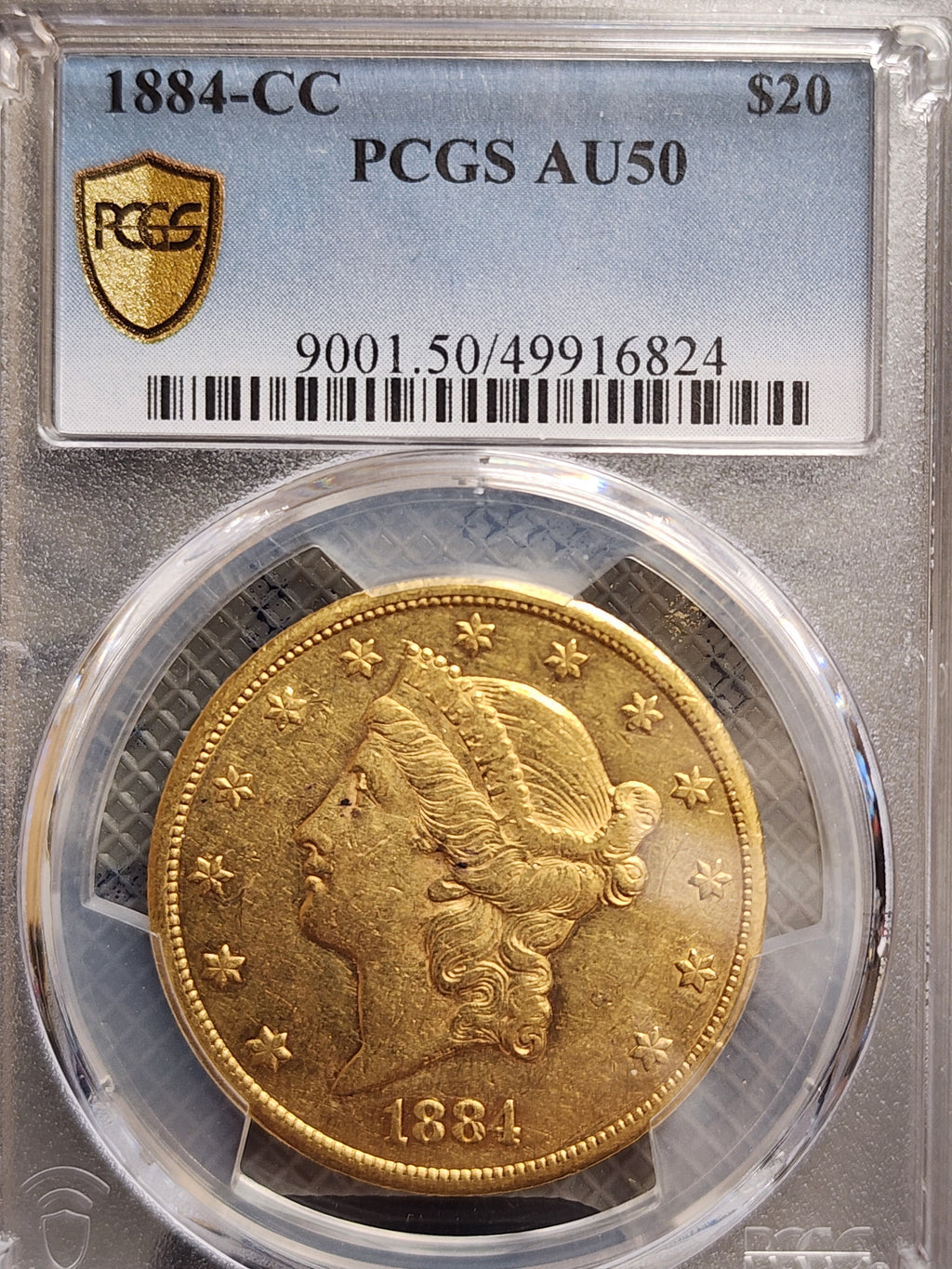 1884-CC $20 Gold Liberty Double Eagle, PCGS AU-50, Store Sale #G0115.