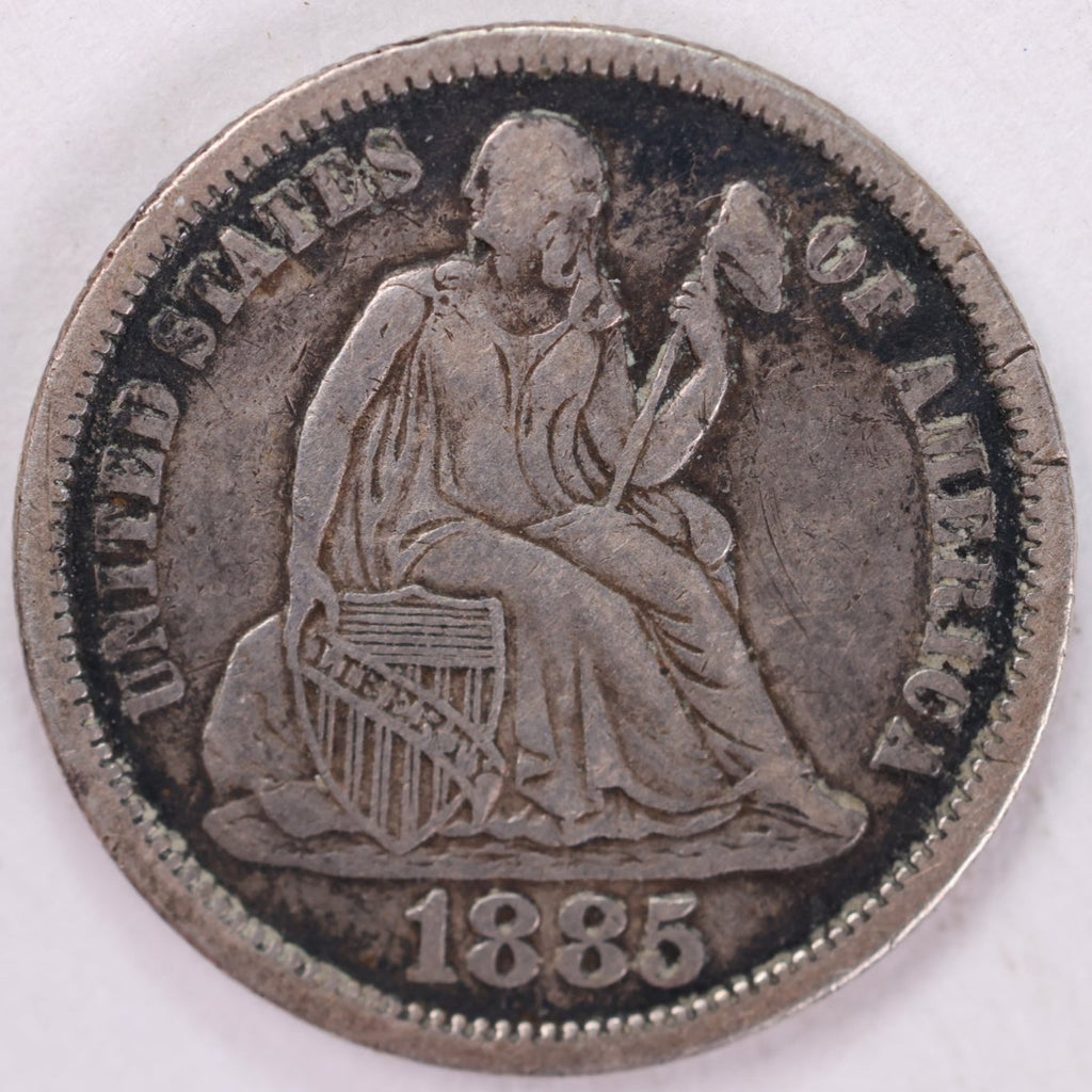 1885 Seated Liberty Silver Dime, Extra Fine Circulated Coin, Store #d885.01
