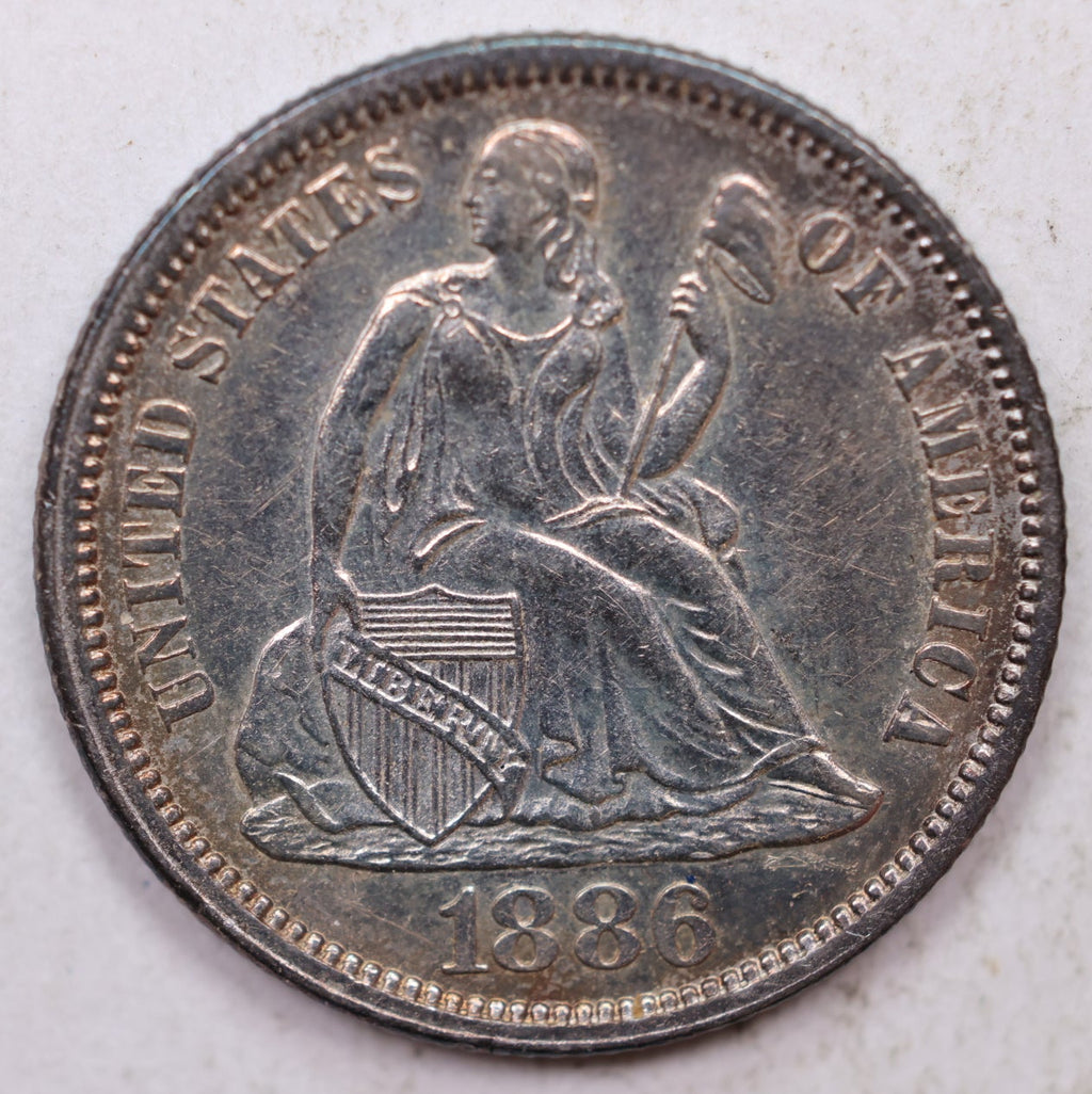 1886 Seated Liberty Dime, Collectible Uncirculated Coin, Store Sale #DE771.