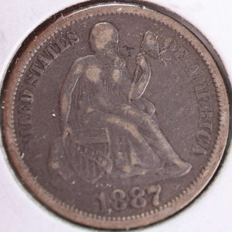 1887 Seated Liberty Silver Dime, Extra Fine Circulated Coin, Store #d887.02