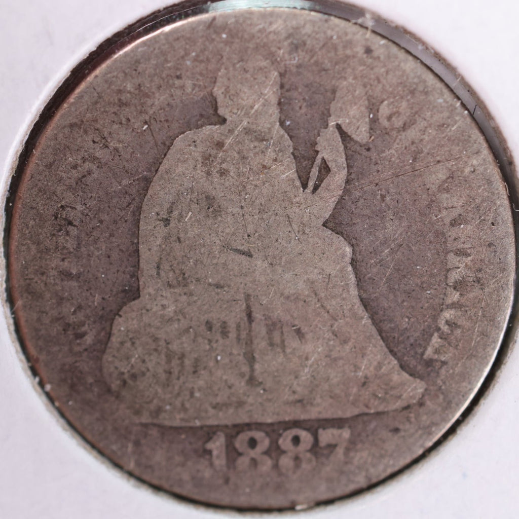 1887 Seated Liberty Silver Dime, Good Circulated Coin, Store #d887.05