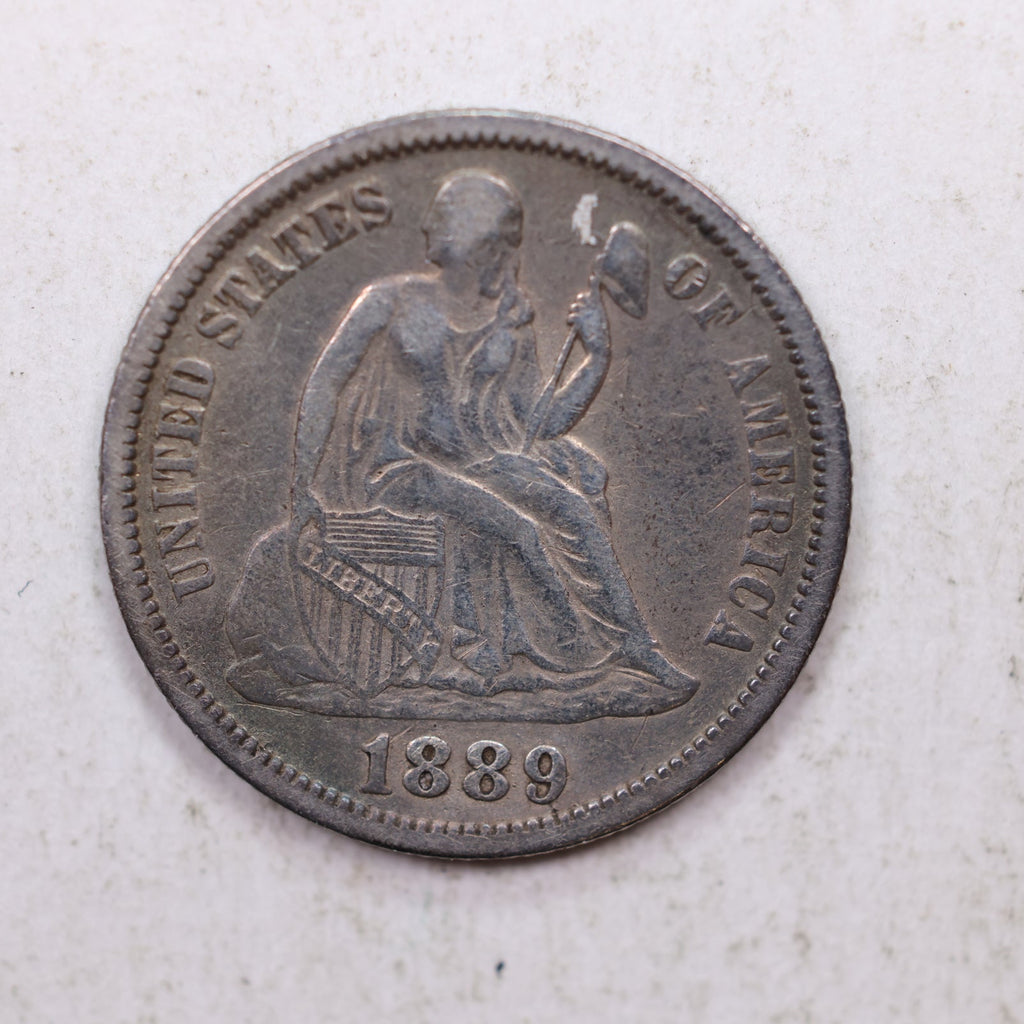 1889 Seated Liberty Dime, Collectible Circulated Coin, Store Sale #DE777.