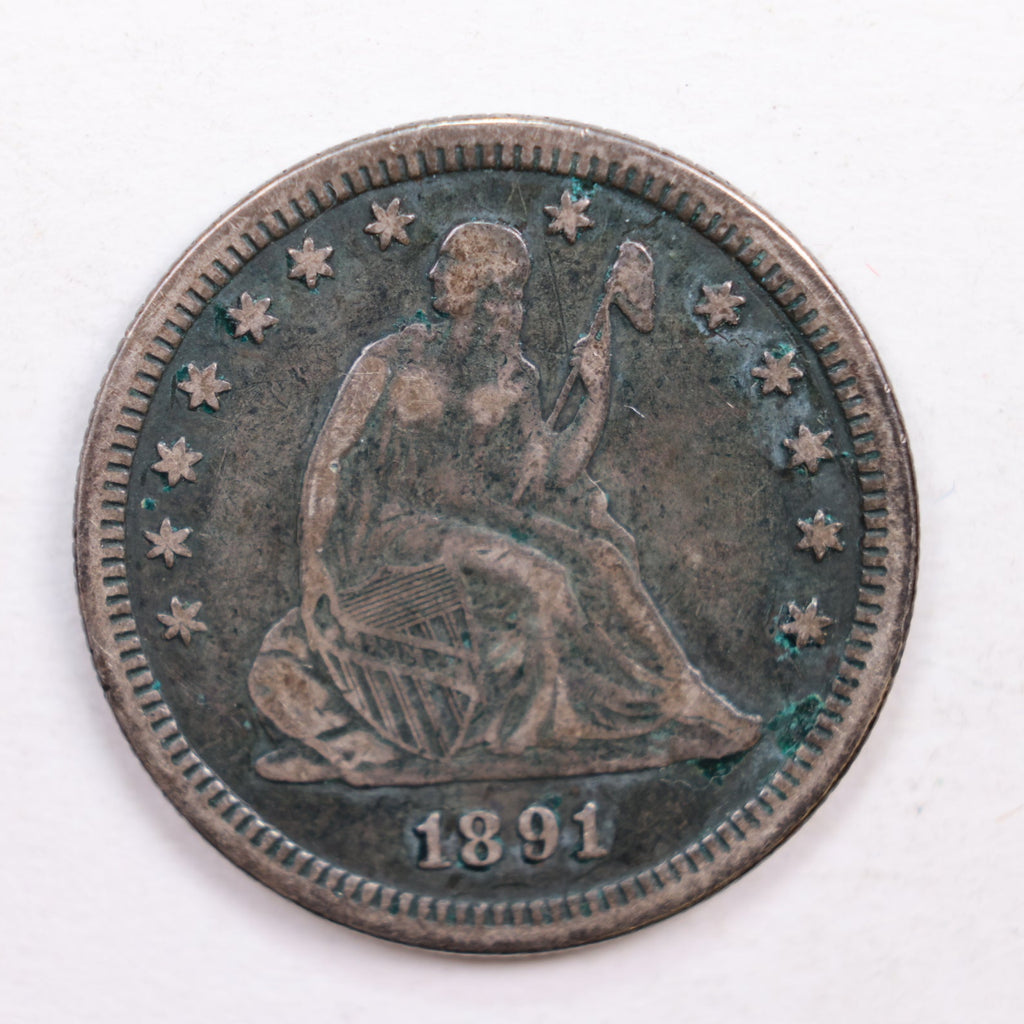 1891-S Seated Liberty Quarter., Very Fine Circulated Silver Coin., Store #QR528.