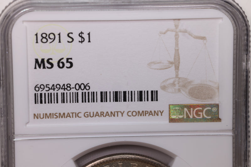 1891-S Morgan Silver Dollar., NGC Graded MS-65. SALE #88092