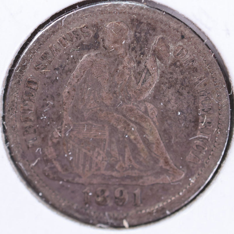 1891 Seated Liberty Silver Dime, Extra Fine Circulated Coin, Store #d891.02