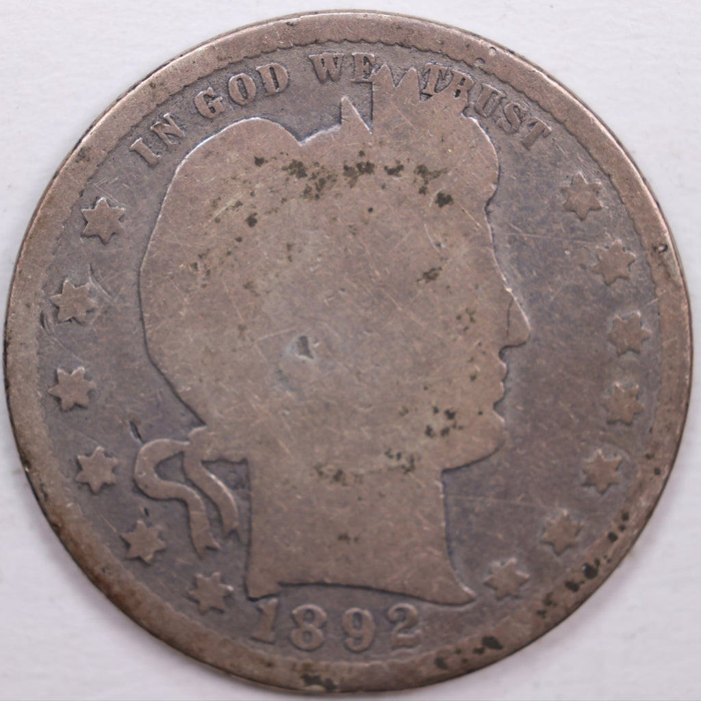 1892-O Barber Silver Quarter, Good Circulated Coin, Store #QR0327