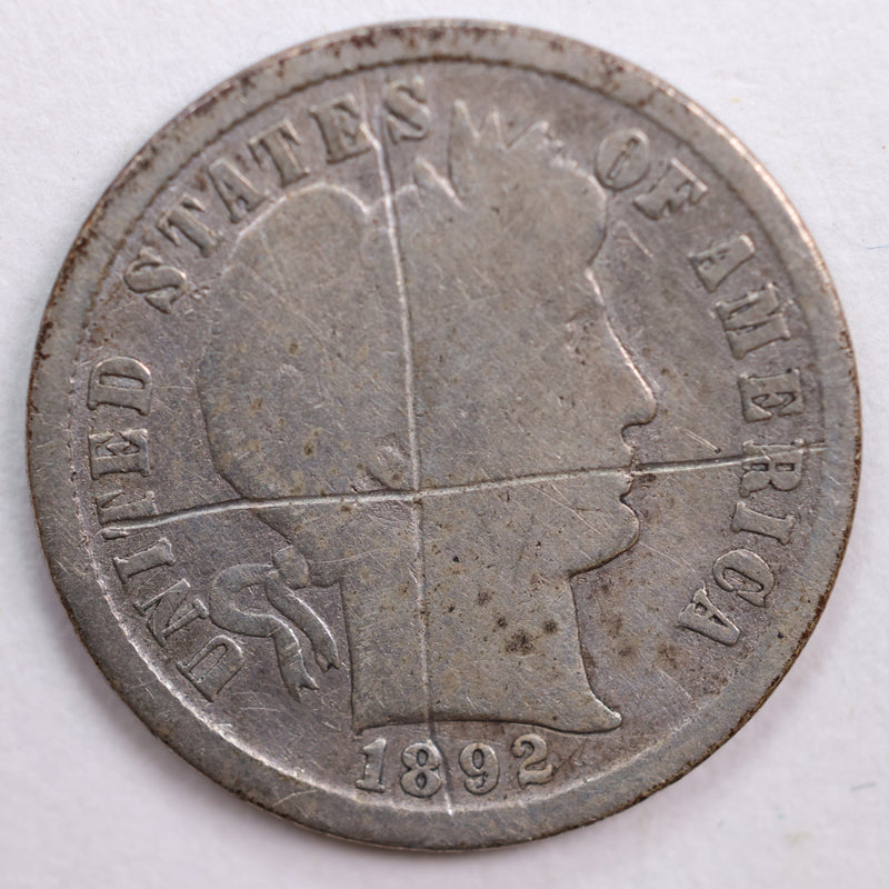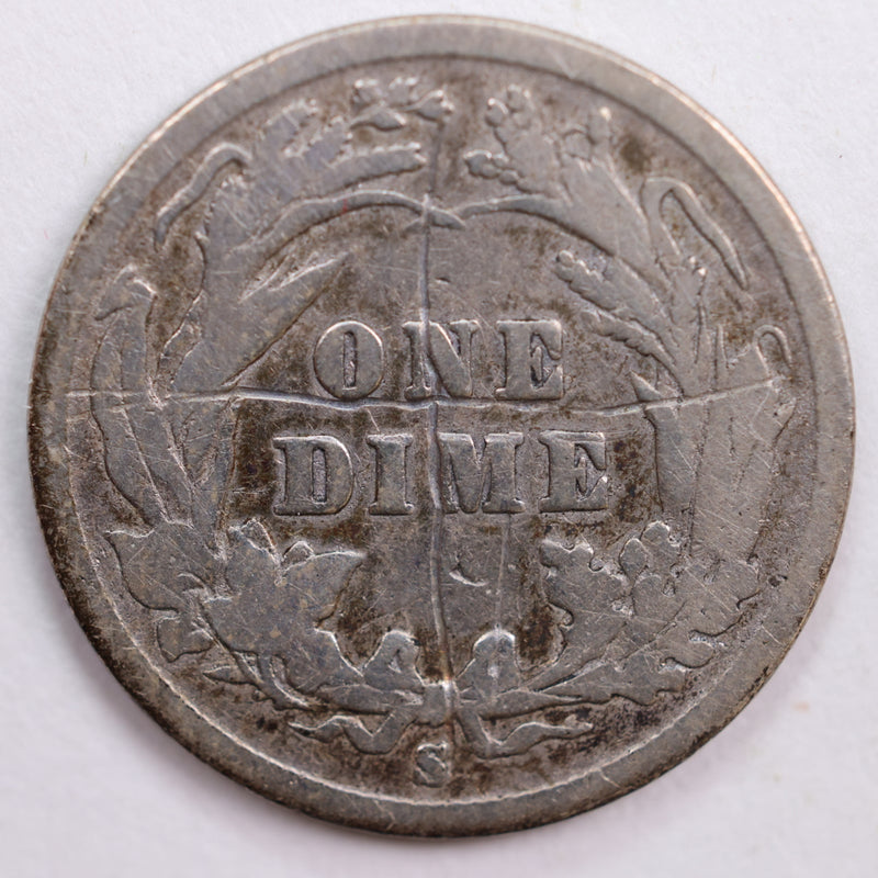 1892-S Barber Silver Dime, Very Good Circulated Coin, Store #DE0523