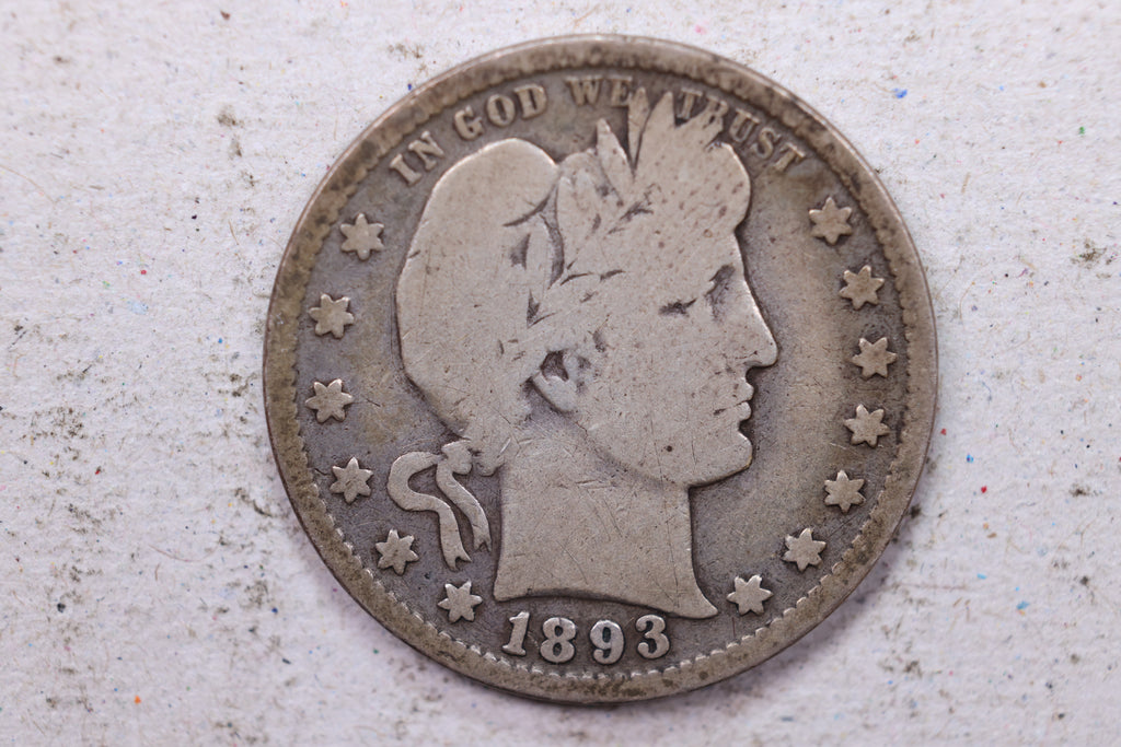 1893 Barber Silver Quarter., Very Good., Circulated Coin., Store #1339