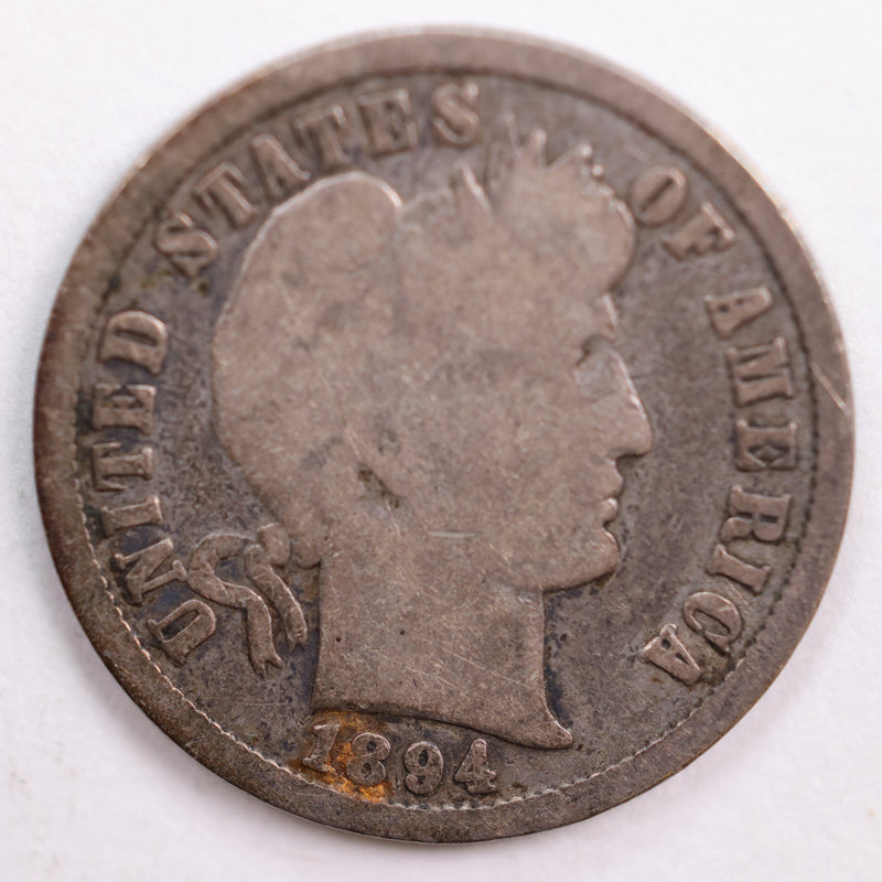1894 Barber Silver Dime, Very Good Circulated Coin, Store #DE0514