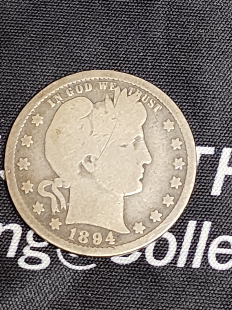 1894-O Barber Silver Quarter., Very Good Circulated Coin, Store #QR0235