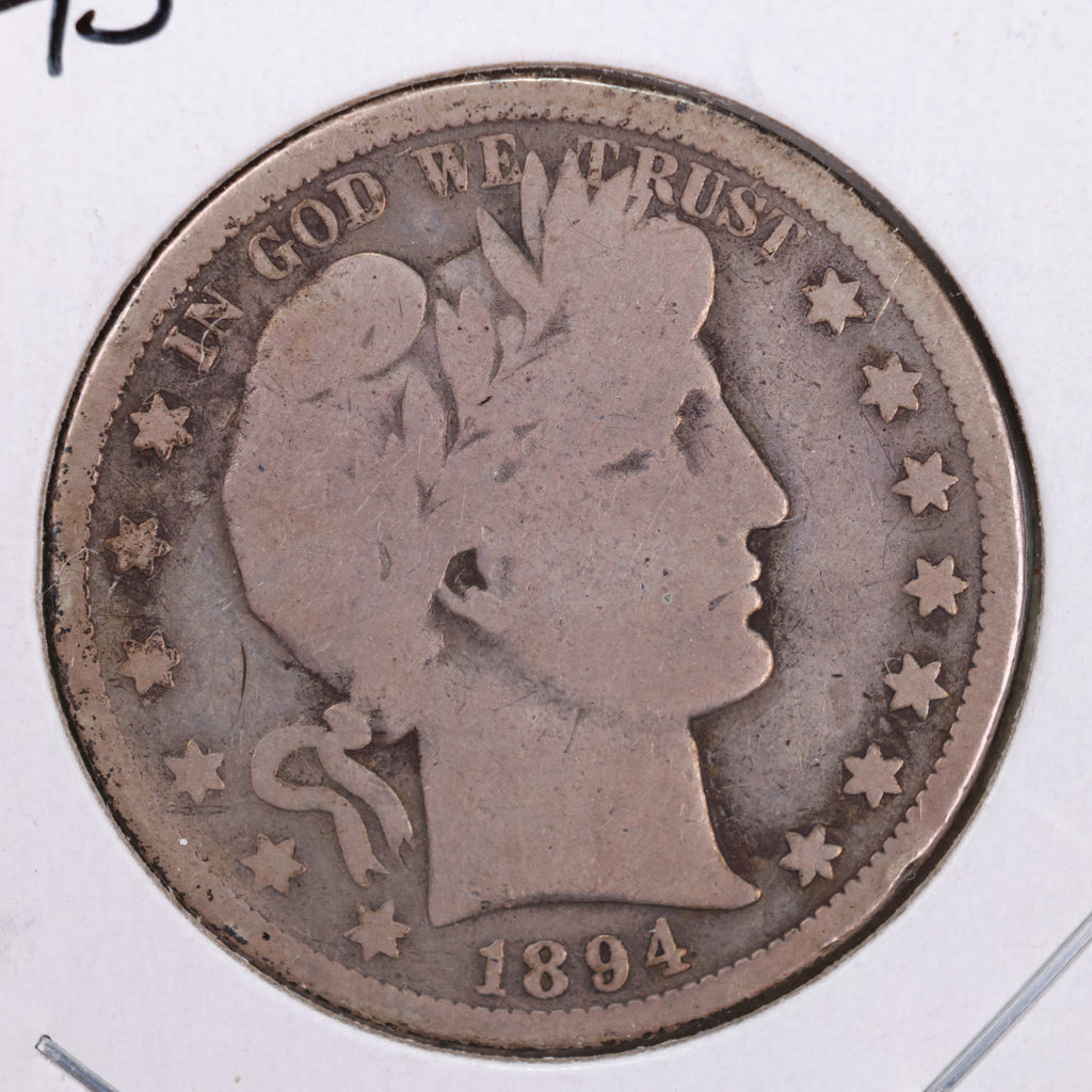 1894-S Barber Silver Half Dollar., Very Good., Circulated Coin., Store #HR144