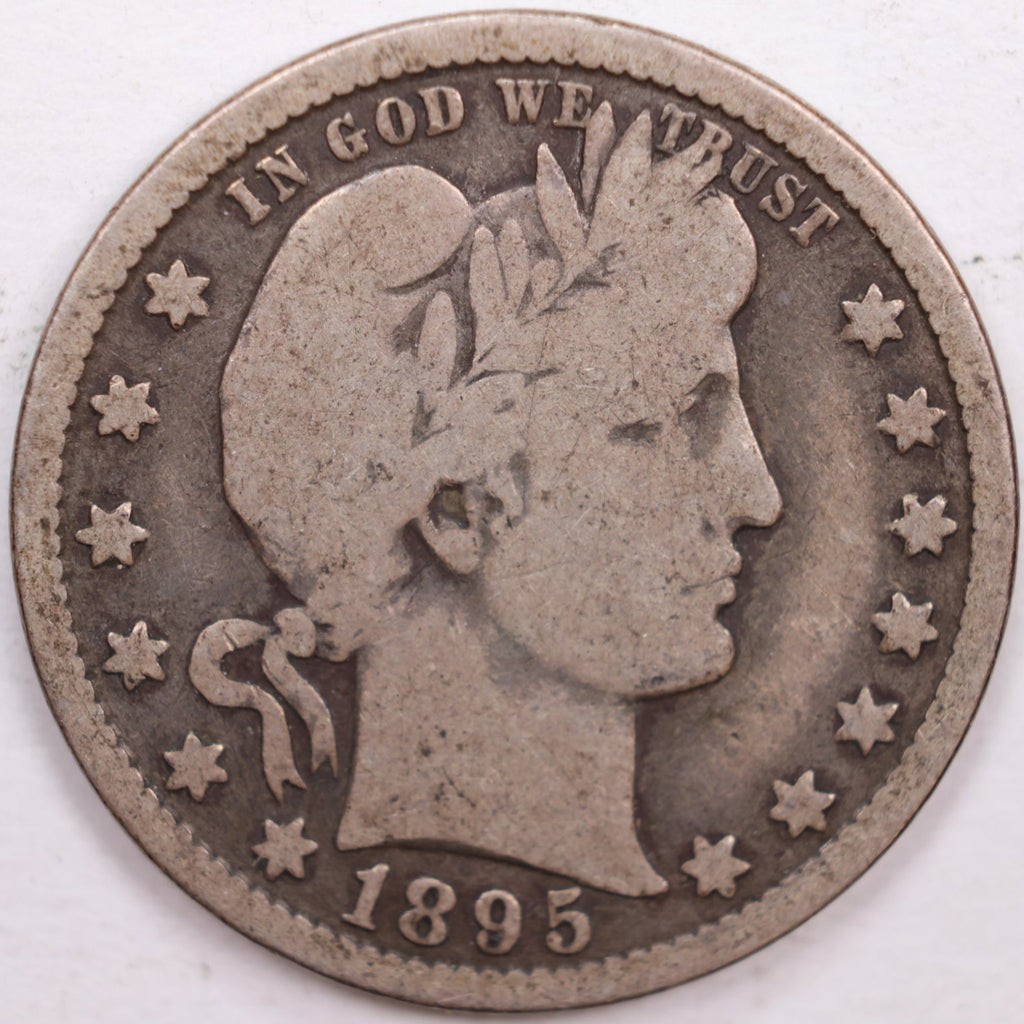 1895-O Barber Silver Quarter, Very Good Circulated Coin, Store #QR0347