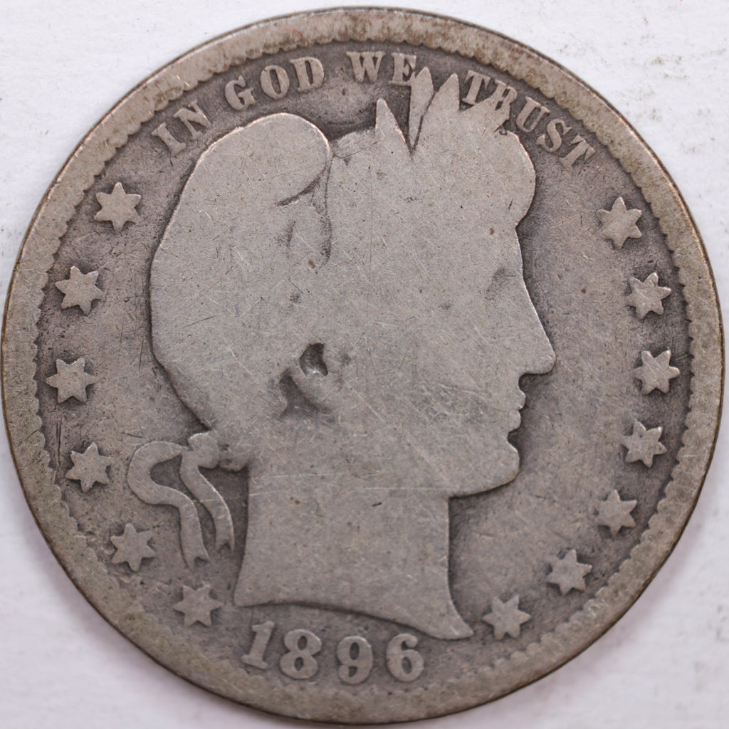1896-O Barber Silver Quarter, Very Good Circulated Coin, Store #QR0350