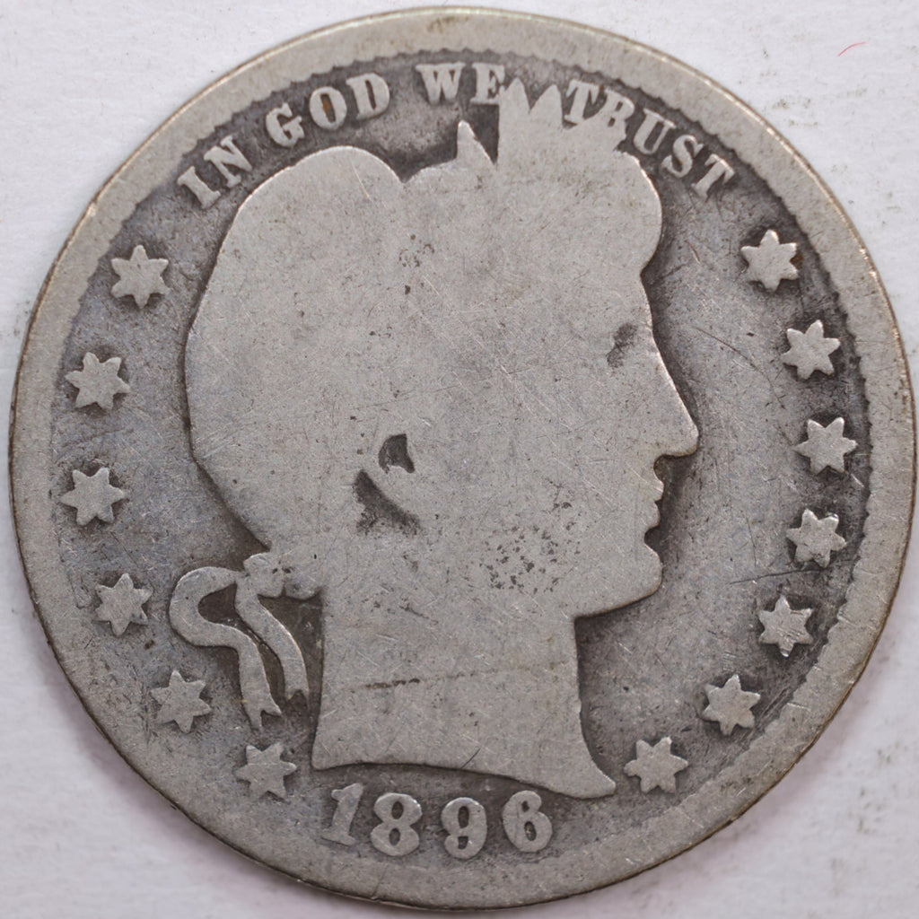 1896-O Barber Silver Quarter, About Good Circulated Coin, Store #QR0351