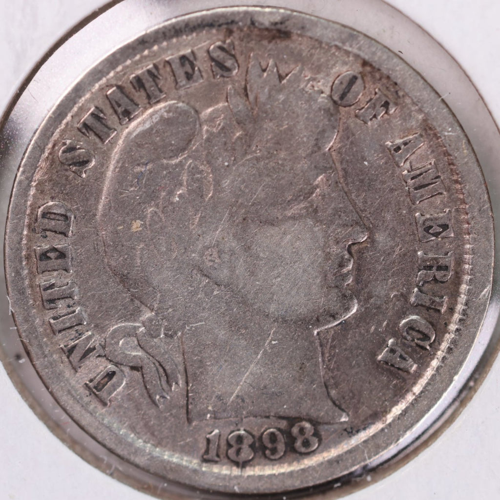 1898 Barber Silver Dime, Very Good+ Circulated Coin, Store #d898.02