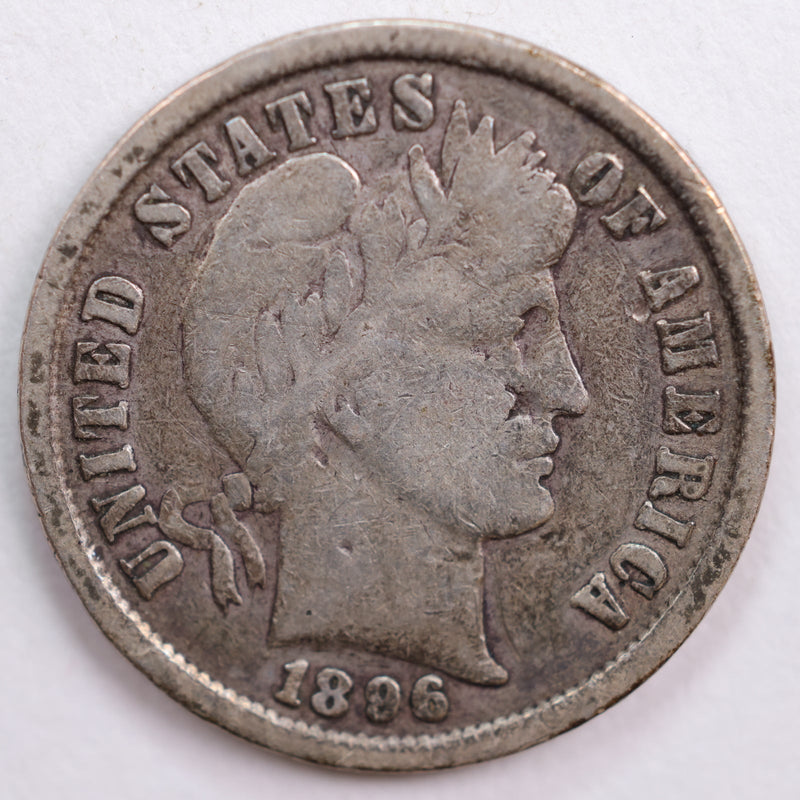 1896 Barber Silver Dime, Very Good Circulated Coin, Store #DE0507
