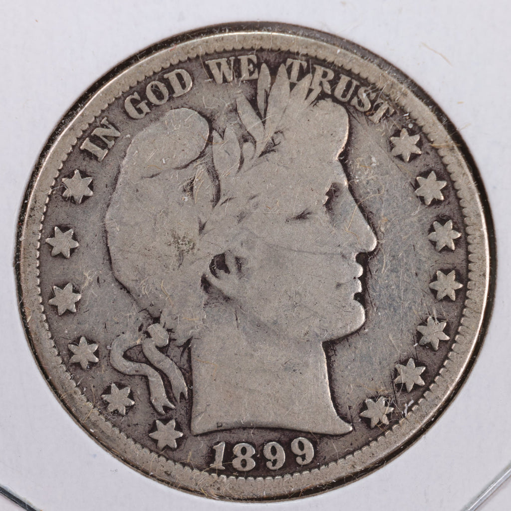 1899 Barber Silver Half Dollar., Very Good., Circulated Coin., Store #HR016