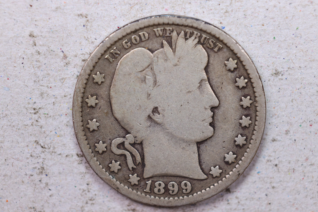 1899 Barber Silver Quarter., Very Good., Circulated Coin., Store #1374