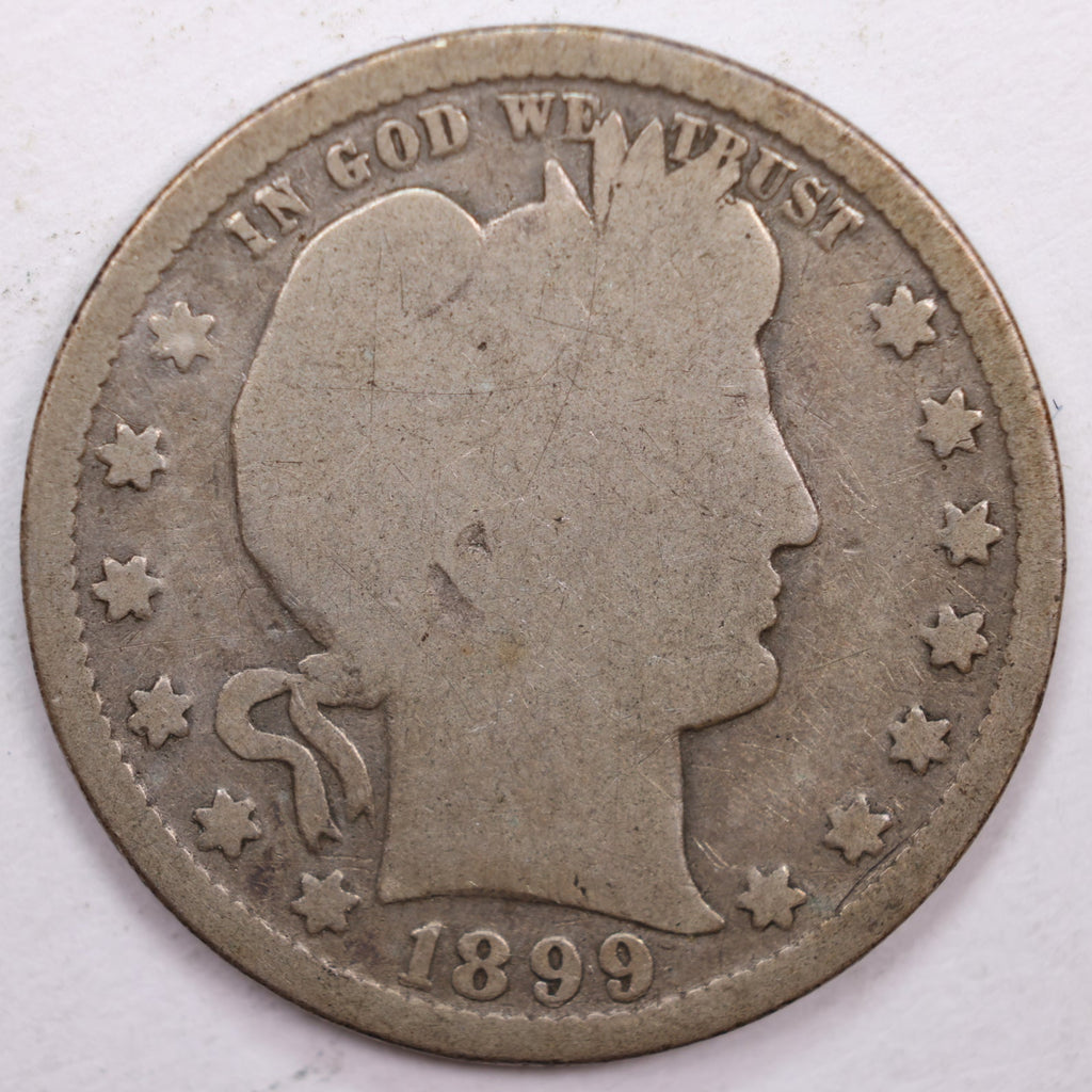 1899 Barber Silver Quarter, Good Circulated Coin, Store #QR0395