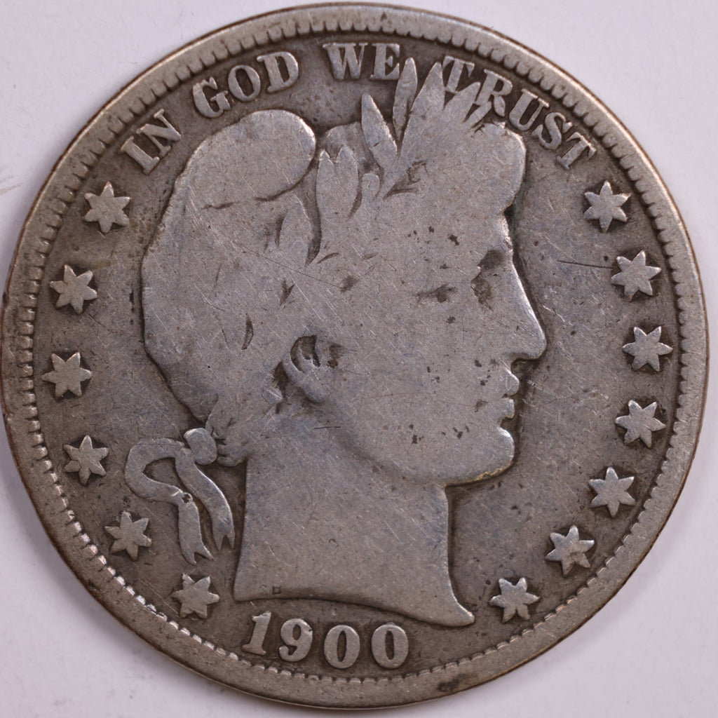 1900 Barber Half Dollar, Very Good Circulated Coin, Store #HR0524