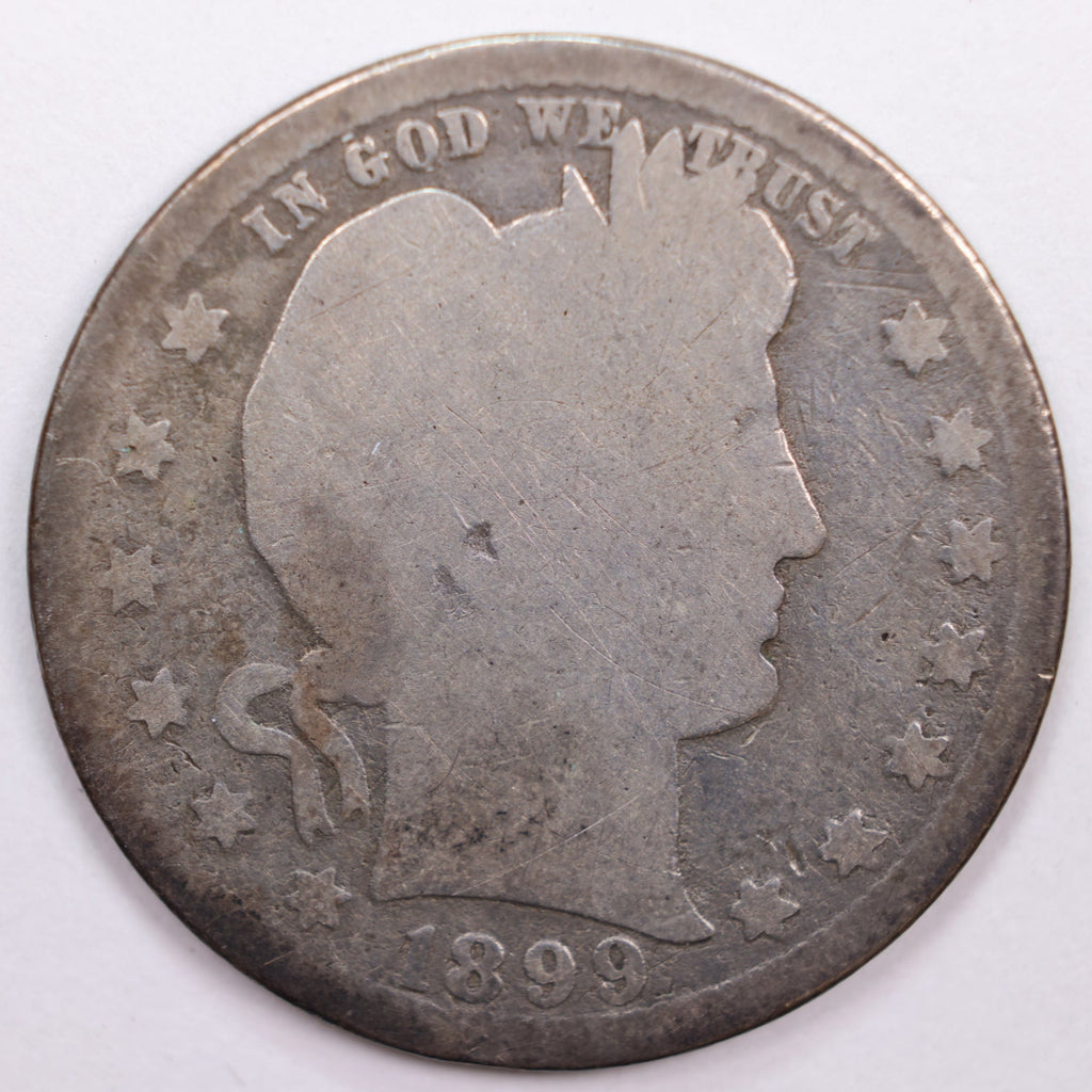 1899-O Barber Silver Quarter, About Good Circulated Coin, Store #QR0406