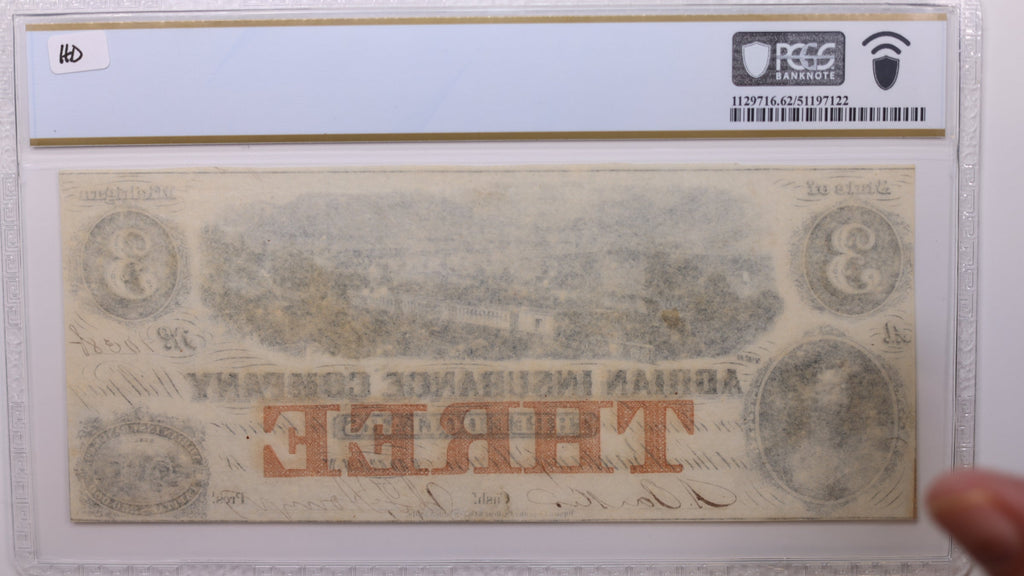 18__ $3, Adrian, Michigan., Obsolete Currency., PCGS CU-62., Store #GMI0100.