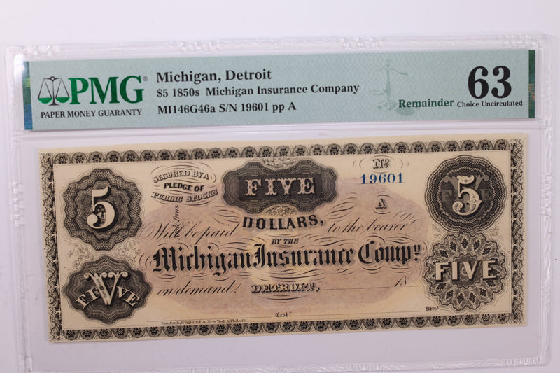 18__ $5., Obsolete Currency., Detroit, MI., PMG CU-63., Store #GMI030