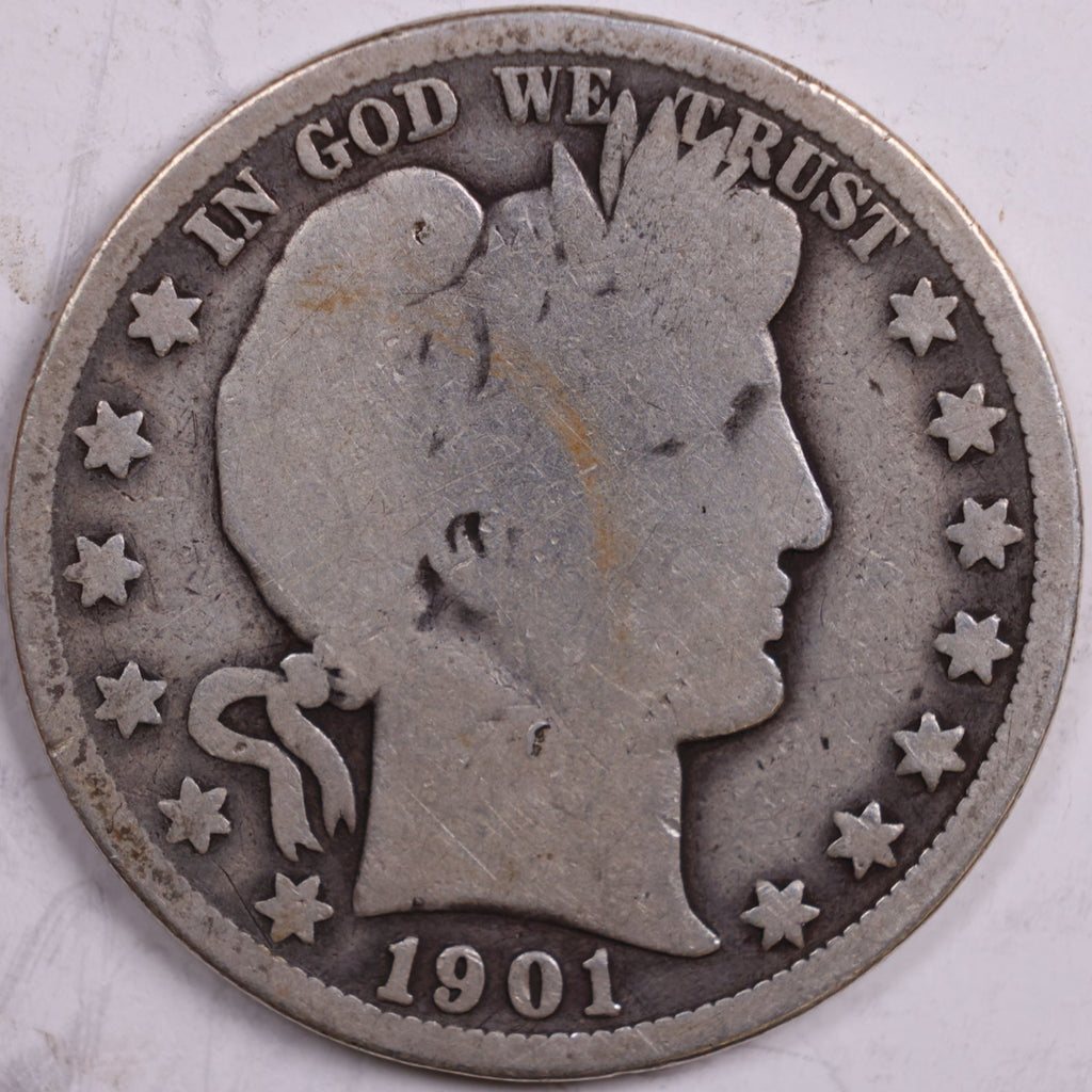 1901-O Barber Half Dollar, Good Circulated Coin, Store #HR0526