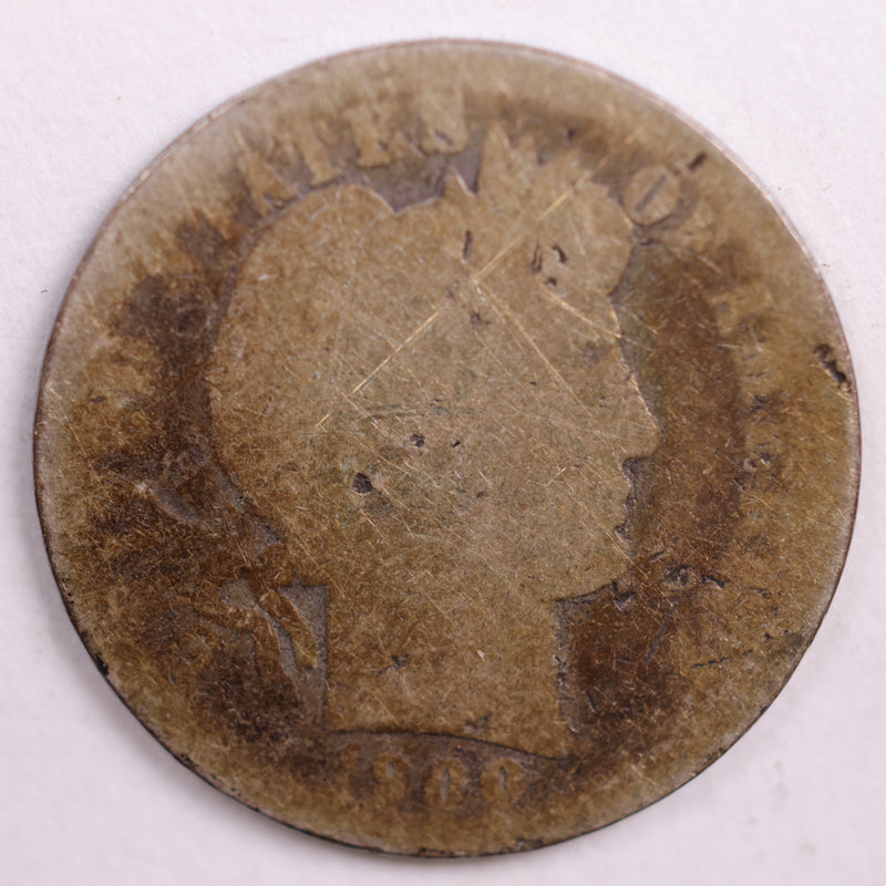 1900 Barber Silver Dime, Abt Good Circulated Coin, Store #DE0498