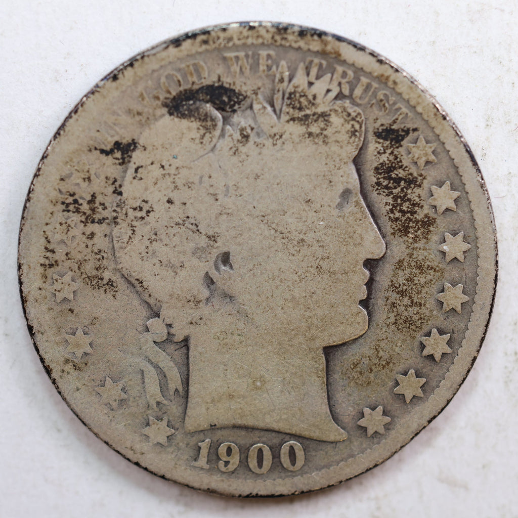 1900-O Barber Silver Half Dollar, About Good Circulated Coin, Store #HR0788