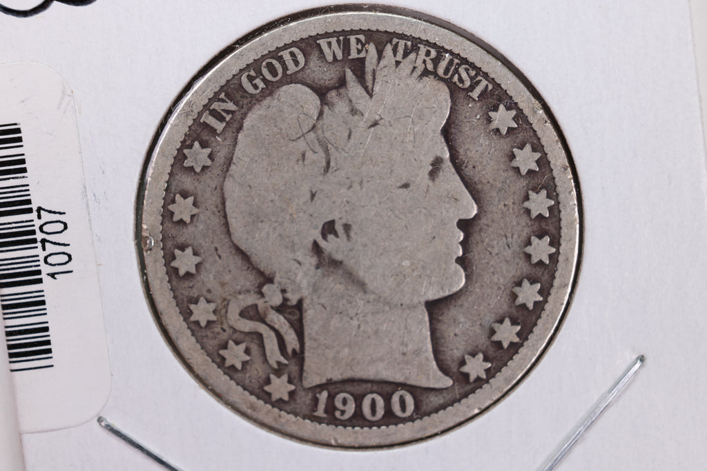 1900-O Barber Silver Half Dollar., Good., Circulated Coin., Store #HR034