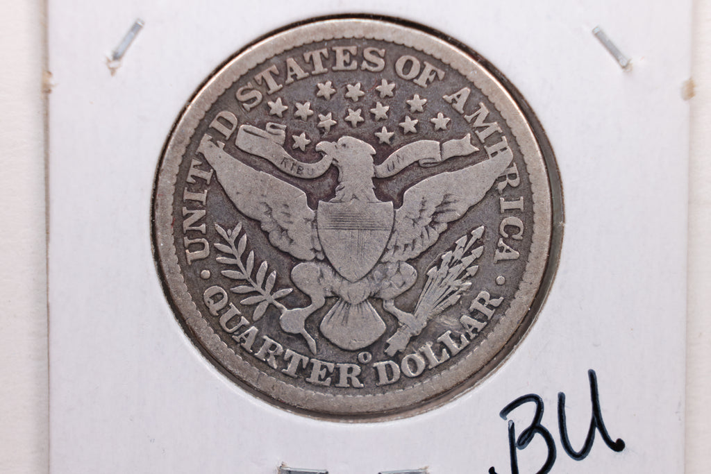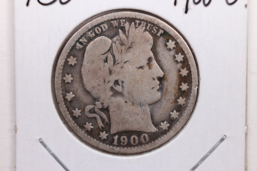 1900-O Barber Silver Quarter., Very Good Circulated Coin, Store #QR0244