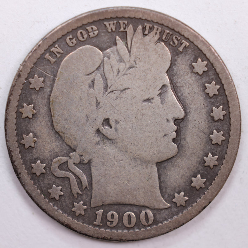 1900-O Barber Silver Quarter, Very Good Circulated Coin, Store #QR0415