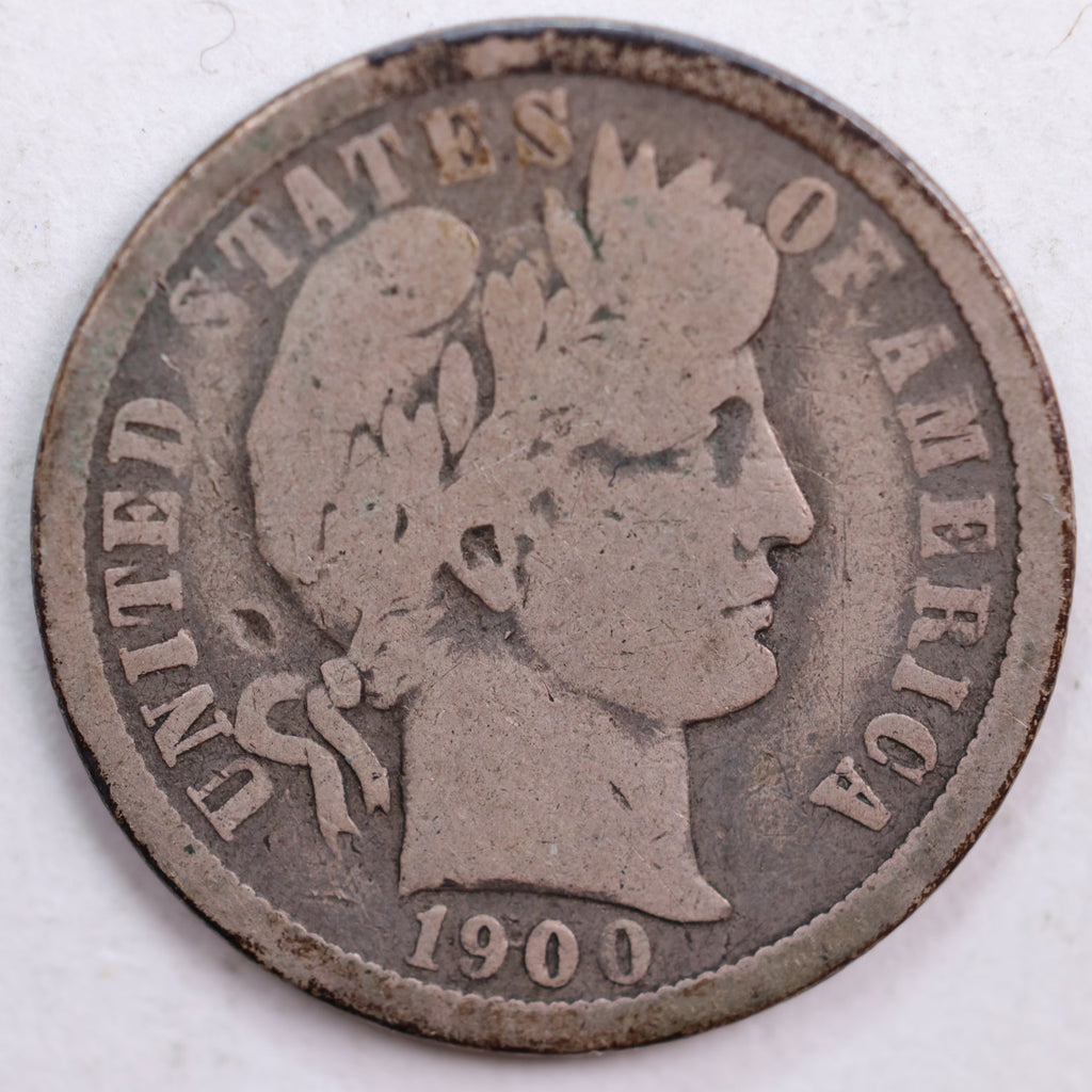 1900-O Barber Silver Dime, Very Good Circulated Coin, Store #DE0494