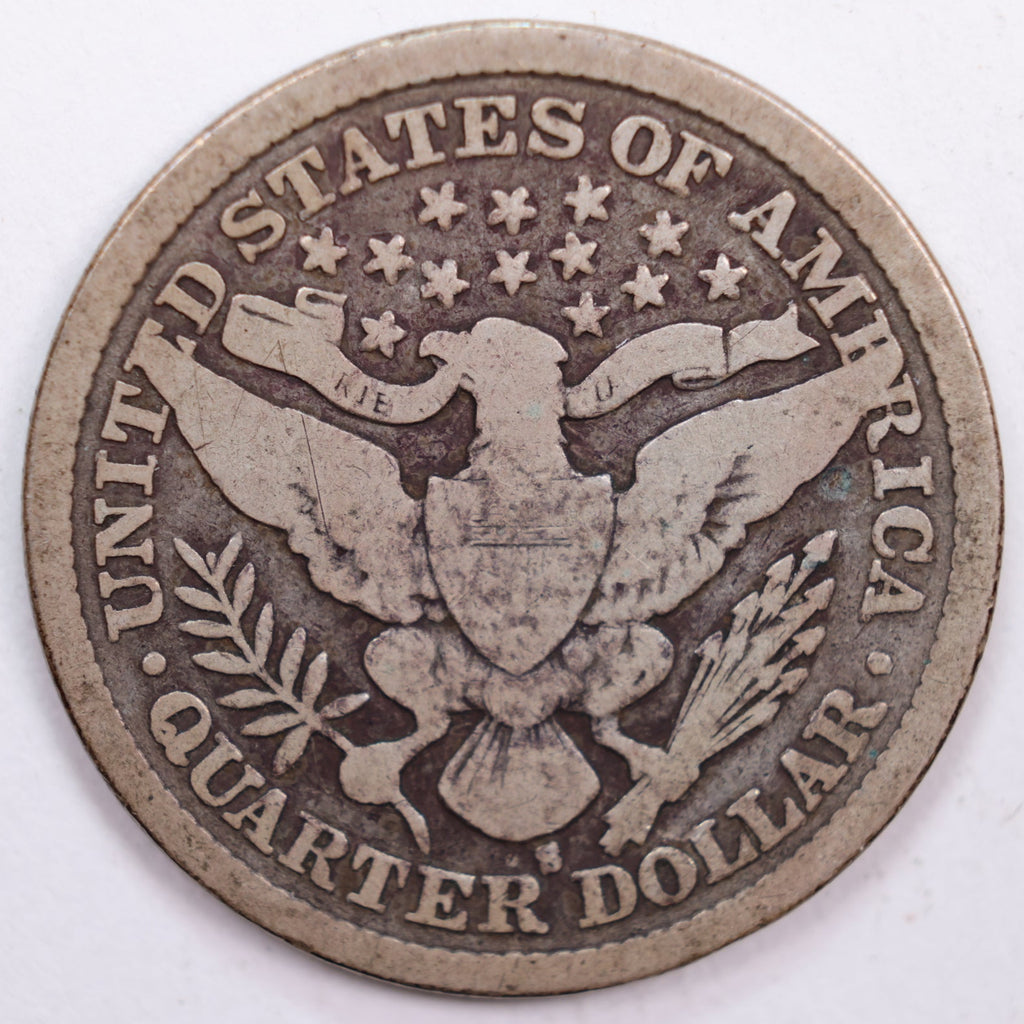 1900-S Barber Silver Quarter, Very Good Circulated Coin, Store #QR0419