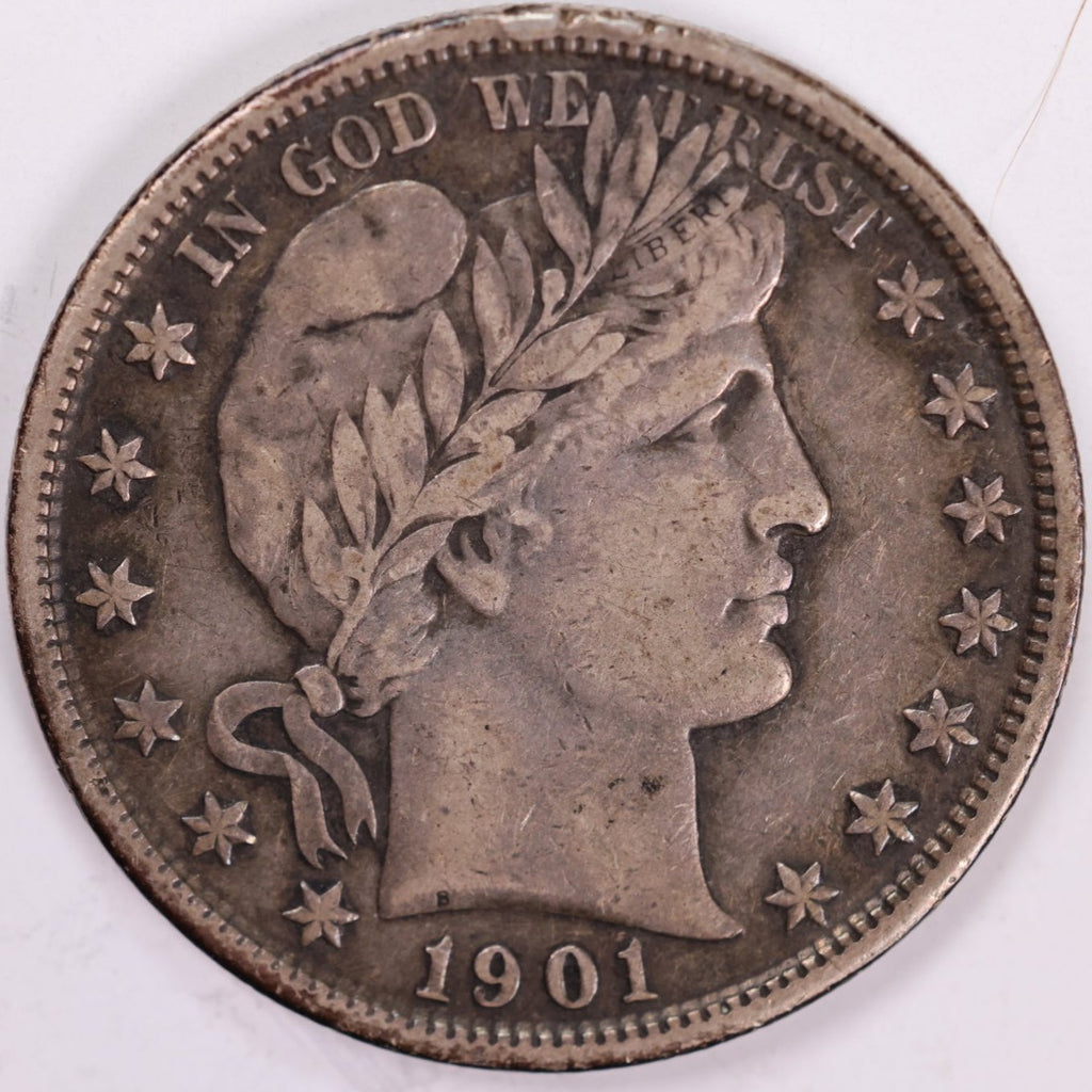 1901 Barber Half Dollar, Very Fine+ Circulated Coin, Store #H901.04