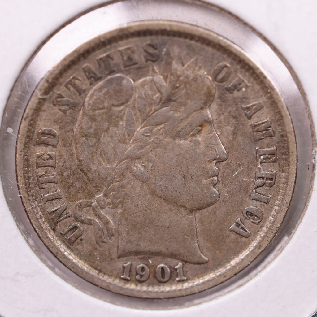 1901 Barber Silver Dime., V.F+., Store Sale #19376