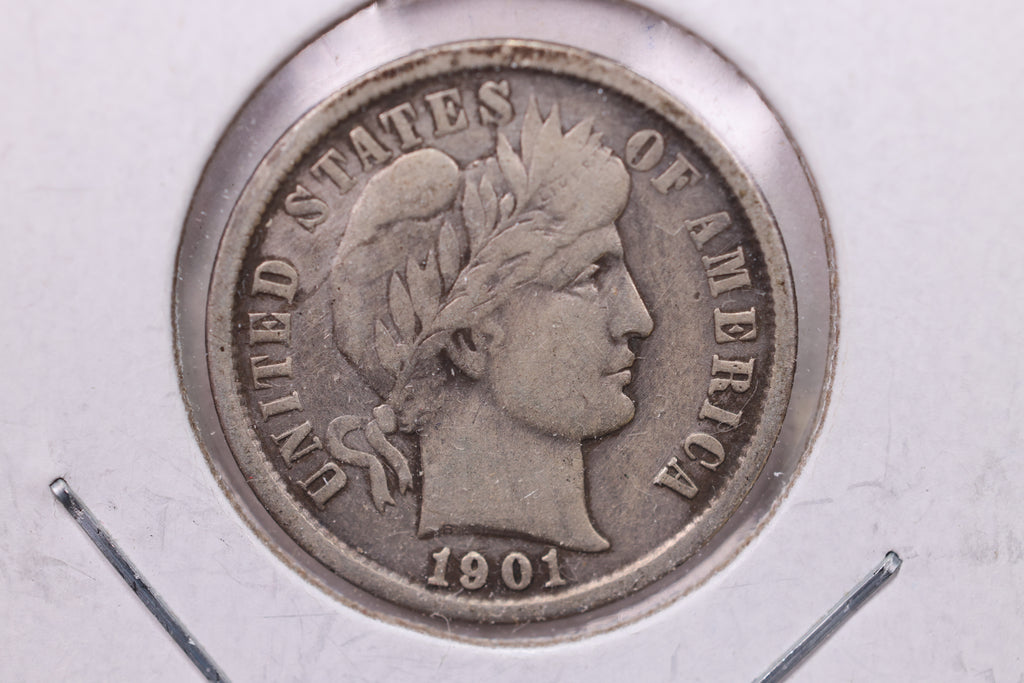 1901 Barber Silver Dime., V.F., Store Sale #19379