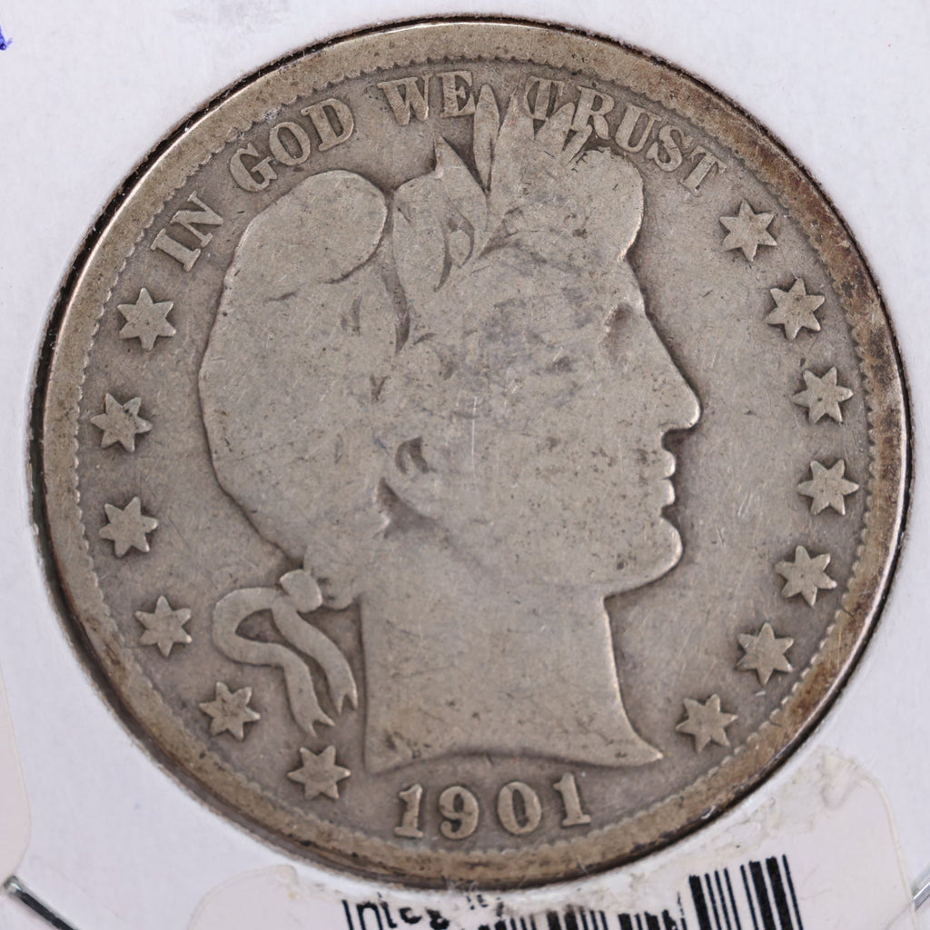 1901 Barber Silver Half Dollar, Good Circulated Coin, Store #HR042