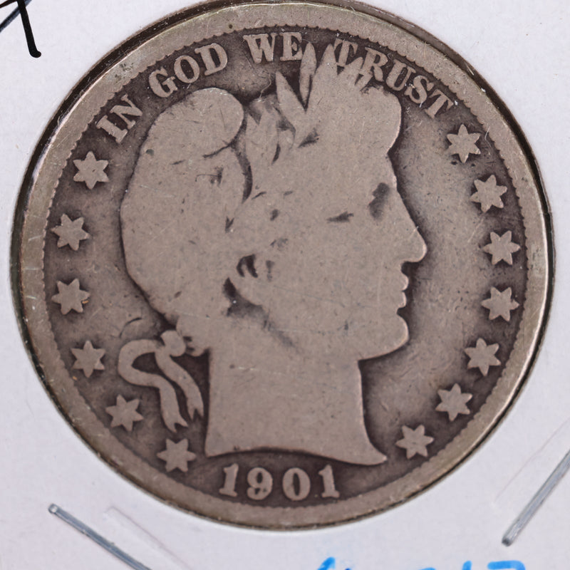 1901 Barber Silver Half Dollar, Good Circulated Coin, Store #HR045