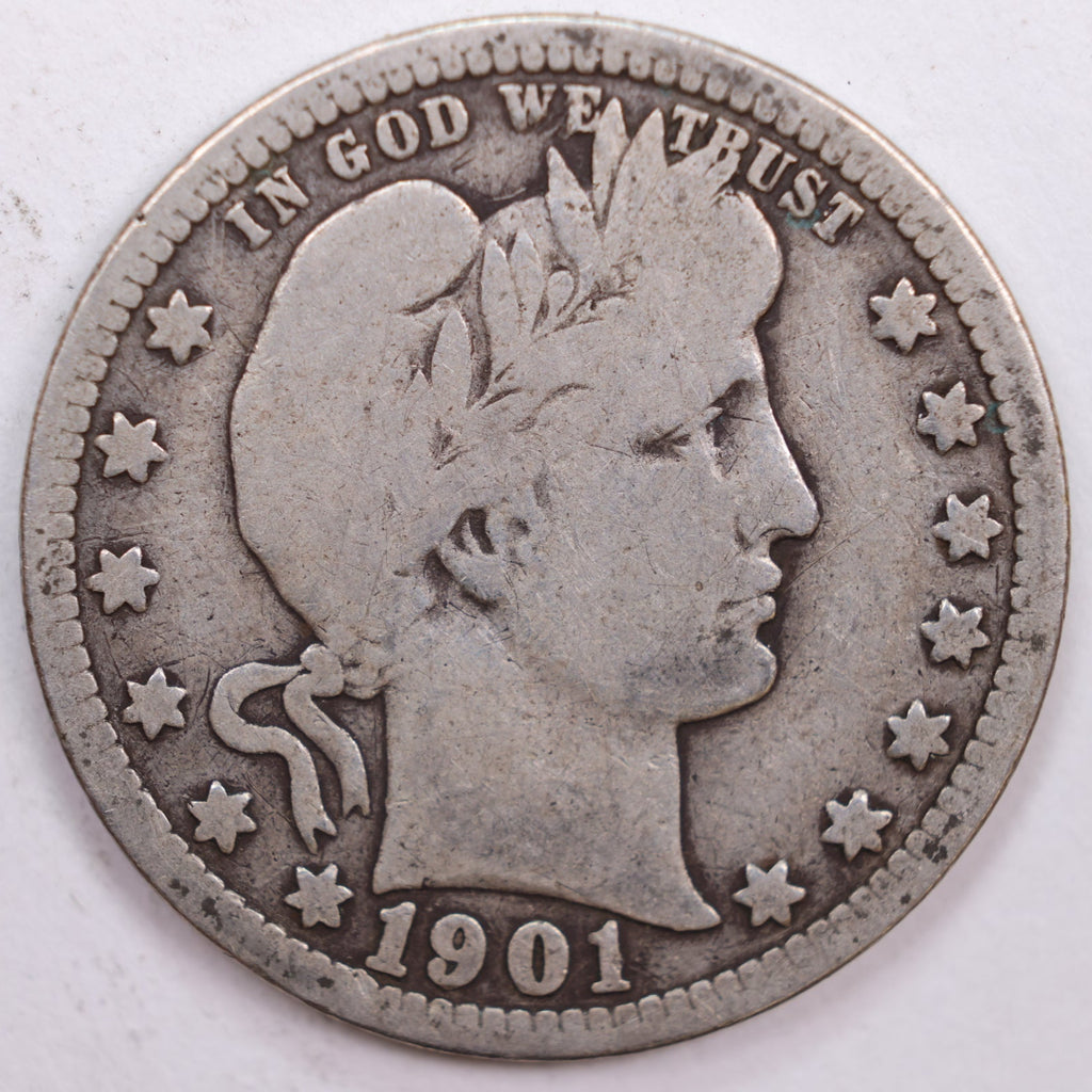 1901 Barber Silver Quarter, Very Good+ Circulated Coin, Store #QR0423