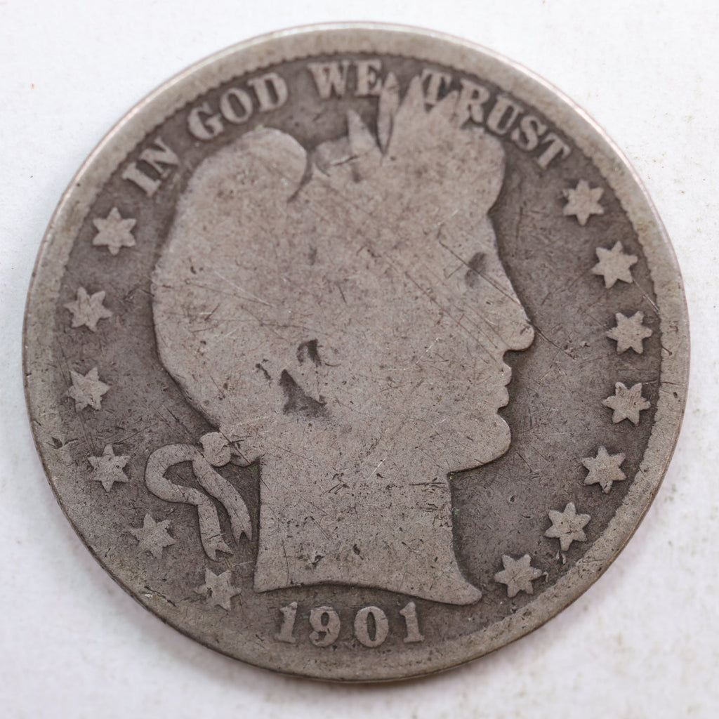 1901-S Barber Silver Half Dollar, Good Circulated Coin, Store #HR0792