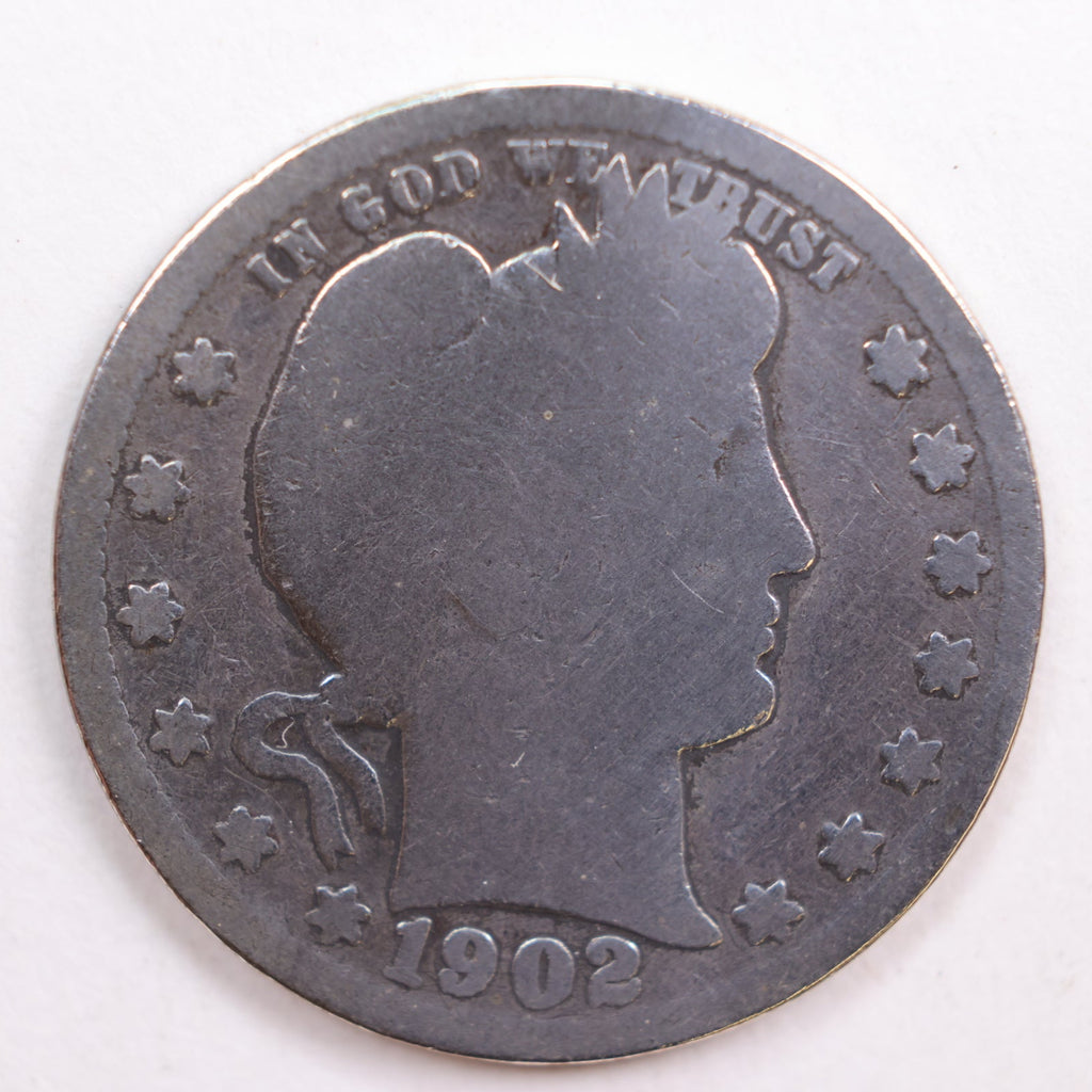 1902 Barber Quarter, Abt Good Circulated Coin, details, Store #QR723