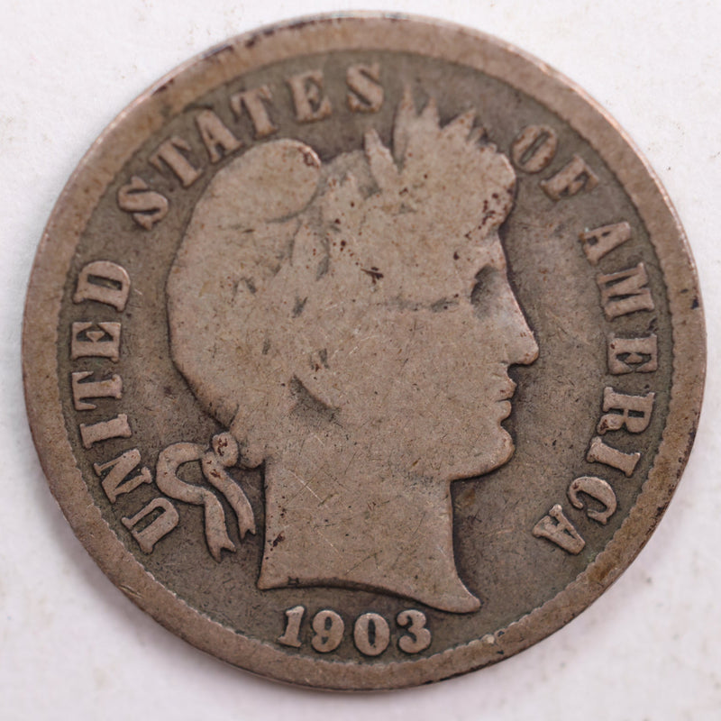 1903 Barber Silver Dime, Good Circulated Coin, Store #DE0483