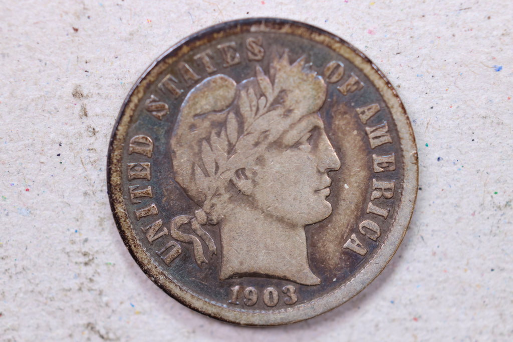 1903 Barber Silver Dime., Very Good Circulated Coin., Store #1192
