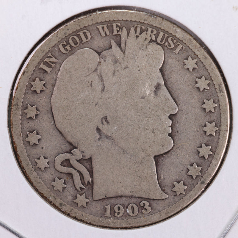1903 Barber Silver Half Dollar., Very Good., Circulated Coin., Store #HR072