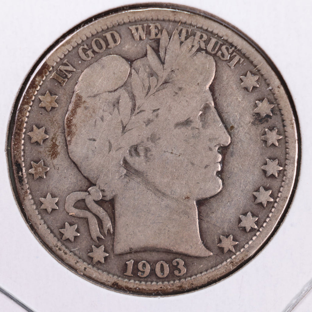 1903 Barber Silver Half Dollar., Very Good., Circulated Coin., Store #HR073