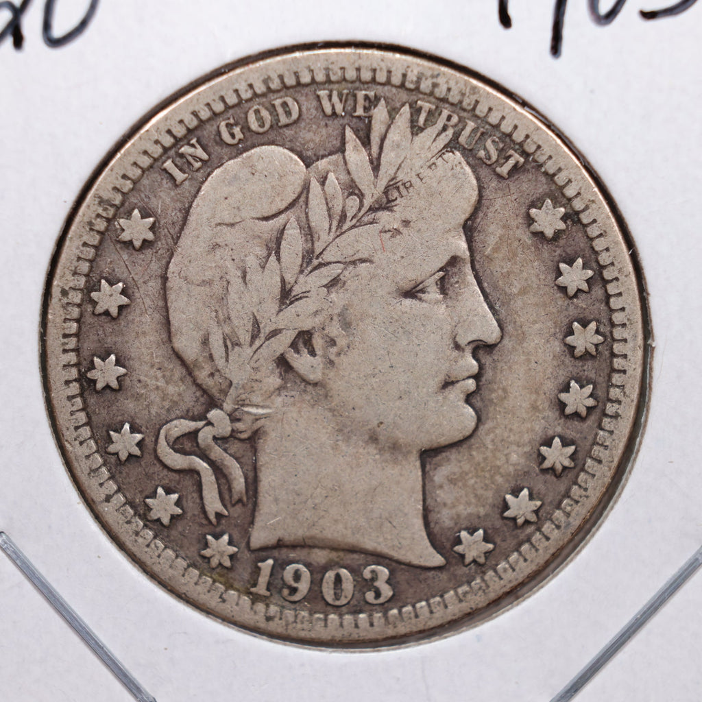 1903 Barber Silver Quarter., Fine Circulated Coin., Store #QR0249