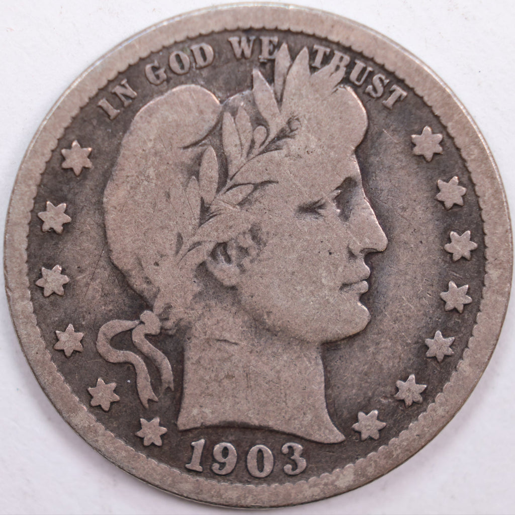 1903 Barber Silver Quarter, Very Good Circulated Coin, Store #QR0438